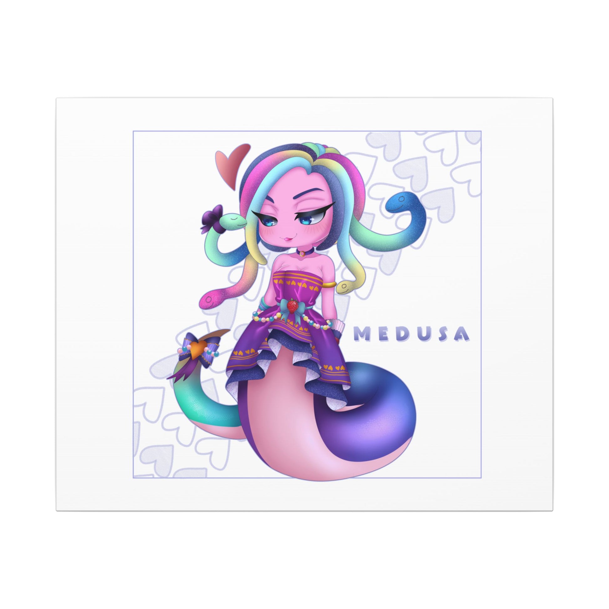 Bring home the sweetest monster from the battlegrounds with this adorably cursed 24x20 canvas print featuring Chibi Gummy Worm Medusa from Smite! Reimagined in a pastel candy-coated style, Medusa slithers into your heart with her jelly-snake hair, glittery eyes, and an irresistibly sour-cute expression that’s equal parts mischief and charm.